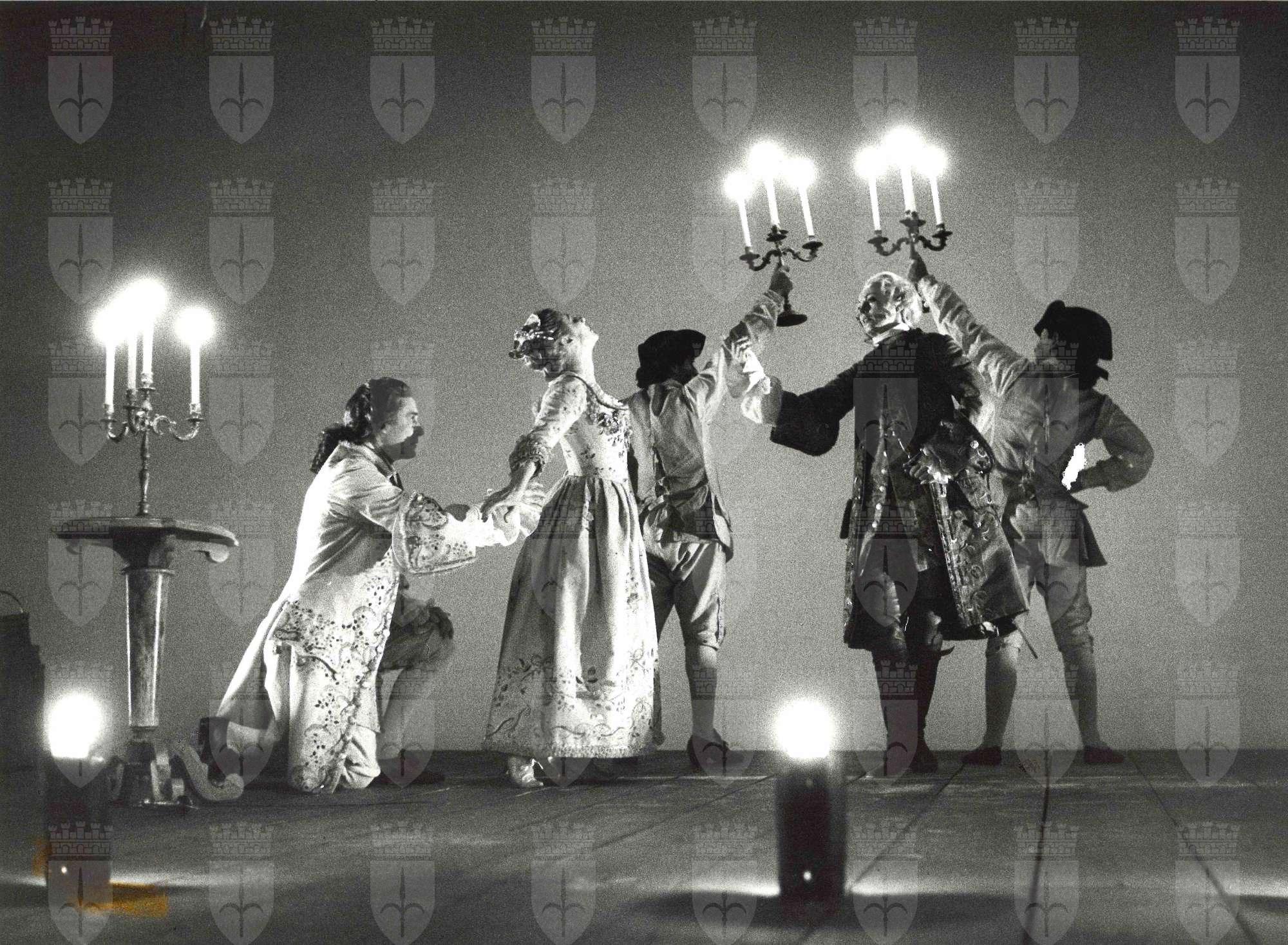 Arlecchino servitore di due padroni, di Carlo Goldoni, regia di Giorgio Strehler, scene e costumi di Ezio Frigerio, musiche di Fiorenzo Carpi, maschere di Amleto Sartori. Milano, Piccolo Teatro, 14 maggio 1987. Interpreti: Ettore Conti, Susanna Marcomeni, Giulia Lazzarini, Enzo Tarascio, Giancarlo Dettori, Roberto Chevalier, Andrea Jonasson, Franco Graziosi, Gianfranco Mauri, Marisa Minelli, Narcisa Bonati, Ferruccio Soleri