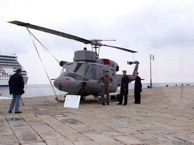 Il sindaco Roberto Dipiazza con l'Assessore Fulvio Sluga sul Molo Audace durante l'atterraggio dell'elicottero della Marina Militare.