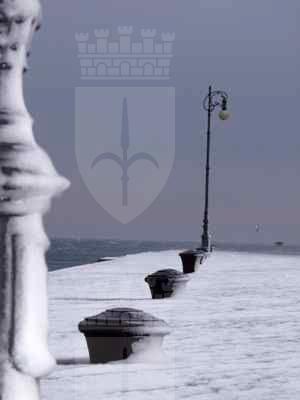 Piazza Unità d'Italia, il Molo Audace e le Rive, via Malcanton e piazza della Borsa sotto la neve