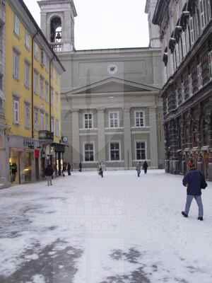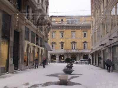 San Giusto, via San Nicolò, piazza San Giovanni, via delle Torri, piazza Sant'Antonio, le Rive, il Canale di Ponterosso, piazza Venezia, piazza Hortis, piazza Verdi, piazza Unità d'Italia, piazza della Borsa sotto la neve