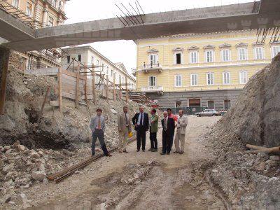 Il Sindaco Roberto Dipiazza nel cantiere del parcheggio di piazza Vittorio Veneto : sopralluogo : Trieste : 2002