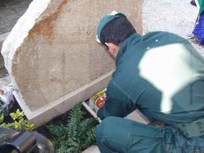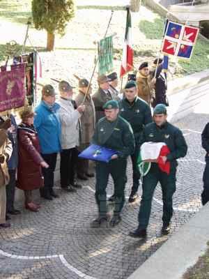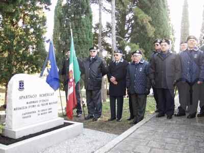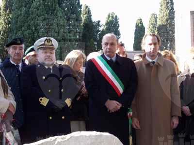 Il sindaco Roberto Dipiazza con gli assessori comunali Roberto Menia e Fulvio Sluga ed il comandante della Capitaneria di Porto di Trieste Paolo Castellani, durante la cerimonia di traslazione dei resti del maro' Spartaco Schergat al cimitero ex militare presso il nuovo monumento eretto dal Comune di Trieste.