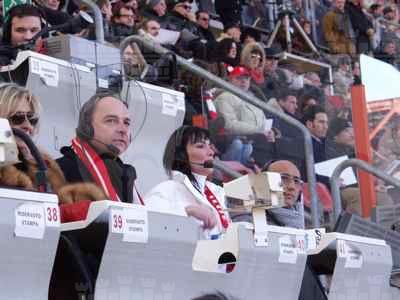 Il sindaco Roberto Dipiazza con Susanna Huckstep e Peppe Quintale durante la diretta allo stadio Nereo Rocco.