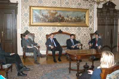 L'assesore comunale Maurizio Bucci durante la conferenza stampa effettuata nel salotto azzurro del Municipio. Sono intervenuti Enrico Samer per l'omonima compagnia triestina, Stefano Tositti della Jlt veneziana e il napoletano Francesco Luise