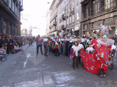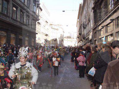 Momenti della sfilata carnevalesca commentata al microfono anche dall'assessore Maurizio Bucci