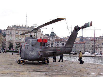 Il sindaco Roberto Dipiazza con l'Assessore Fulvio Sluga sul Molo Audace durante l'atterraggio dell'elicottero della Marina Militare.