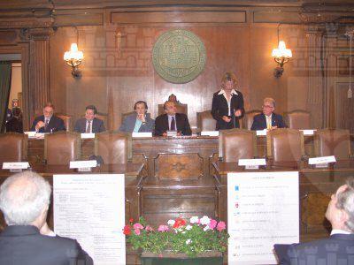 Gli assessori Renzo Codarin, Roberto Menia alla sua destra, Federica Seganti assessore regionale ed il presidente del Consiglio Comunale Bruno Sulli