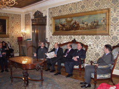 Il sindaco Roberto Dipiazza, l'assessore comunale Roberto Menia ed i dirigenti dell'Anci del Friuli Venezia Giulia , nel salotto azzurro del Municipio.