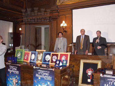 Il sindaco Roberto Dipiazza, Fabio Scoccimarro presidente della provincia, l'assessore Maurizio Bucci, Roberto De Gioia presidente del Comitato «Trieste in Palio» premiano i vincitori nella sala del consiglio comunale