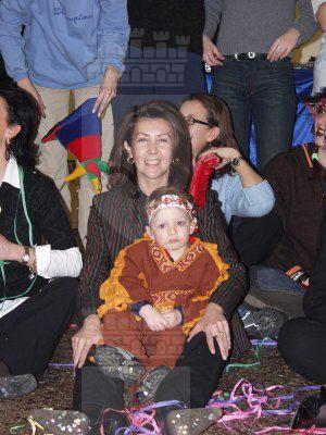 Claudia D'Ambrosio seduta a terra circondata da bambini mascherati