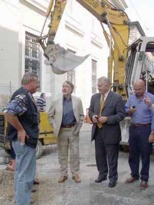L'assessore comunale Giorgio Rossi con il consigliere comunale Michele Lobianco , ed il dirigente comunale Ashiku, assieme Franco Rigutti presidente dell'Associazione Commercianti al Dettaglio nel cantiere in via San Lazzaro.