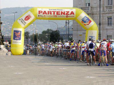 Partecipanti alla partenza della corsa ciclistica Gran fondo d'Europa.