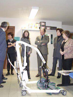 Nella sede della UOT di via Locchi l'assessore Claudia D'Ambrosio osserva il nuovo sollevatore