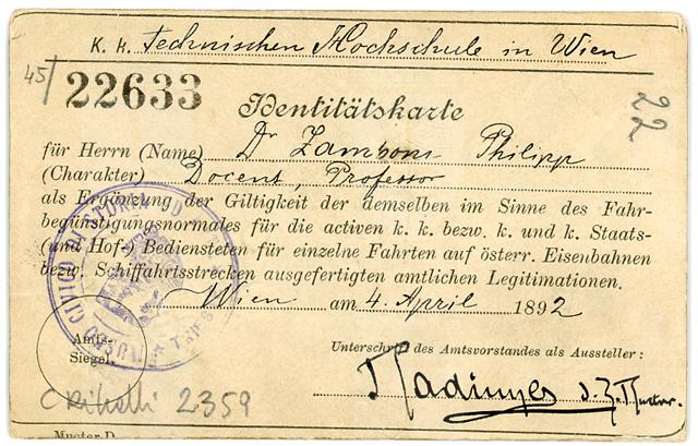 Carta d'identità di Filippo Zamboni, emessa il 4 aprile 1892