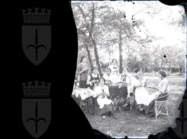 Gruppo di giovani donne che lavorano a maglia ad Aurisina durante la prima guerra mondiale.