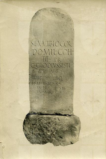 Lapide rinvenuta a Trieste nel 1909 tra via Pondares e via Sant'Apollinare. La stele reca l'iscrizione funeraria del pretoriano Sextus Vibius Cordus, che recita: Sex(to) Vibio Côr=/ do, mil(iti) coh(ortis)/ III pr(aetoriae),/ Q(uintus) Clodius Sesti=/ us v(ivus) f(ecit) / lib(ertis) lib(ertabus)q(ue)./ H(oc) m(onumentum) h(eredem) n(on) s(equetur)./ In fr(onte) p(edes) XII,/ in ag(ro) p(edes) L./ L'epitafio, all'epoca della scoperta, fu trovato fissato mediante un perno di ferro al blocco di pietra originario. All'interno del recinto sepolcrale, oltre alla stele, vi era anche l'urna contenente le ceneri del defunto. La sepoltura si data al terzo quarto del I sec. d.C. La lapide è attualmente conservata presso l'Orto Lapidario del Museo di Storia ed Arte di Trieste.