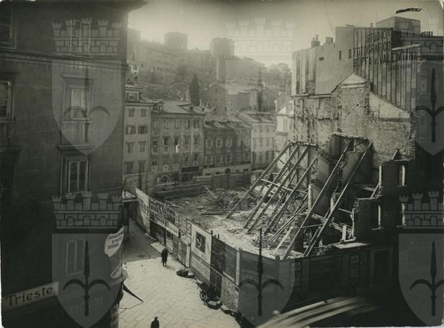 Demolizione dell'edificio situato al civico 25 di corso Vittorio Emanuele III (oggi corso Italia) per l'erezione del Banco di Roma, realizzato su progetto dell'architetto Bruno Slocovich.