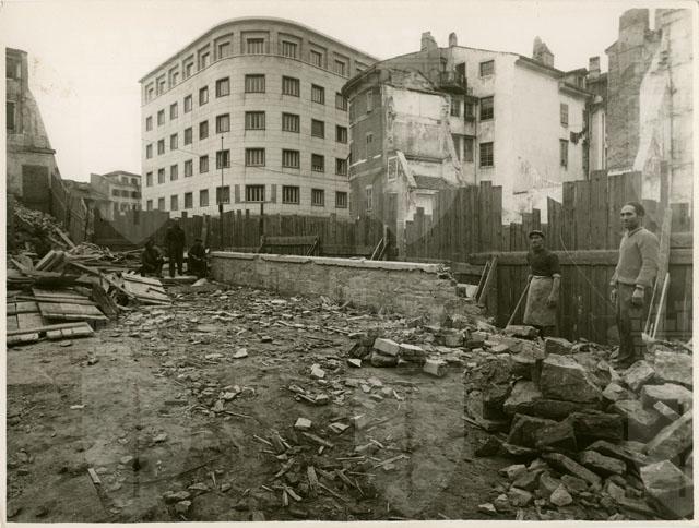 Demolizioni nella zona di via Riborgo in Cittavecchia. Sulla sinistra vi è il palazzo del Genio Civile, a destra palazzo Costanzi.