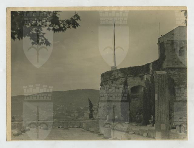 Trieste. S. Giusto : Veduta della basilica romana e di parte del castello, col torrione rotondo