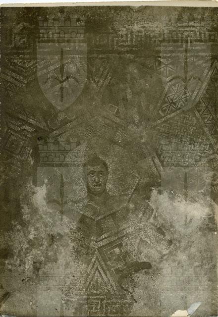 Pannello musivo che ornava il complesso noto in letteratura con il nome di "Grandi Terme", costruito ad Aquileia nel settore sud-occidentale della città antica in età tardocostantiniana. L'edificio, messo in luce negli anni Venti e attualmente in corso di scavo da parte dell'Università di Udine, è noto solo parzialmente: si conosce un ampio "frigidarium", collocato idealmente al centro del complesso, collegato in corrispondenza dei lati brevi mediante due lunghi corridoi a due aule simmetricamente opposte e di identiche dimensioni, interpretate come palestre "apodyteria". A est del frigidario era situata la piscina mentre alcune emergenze poste a ovest sembrerebbero riconducibili alla zona del calidario/tepidario. Completavano il complesso una serie di altri vani, alcuni dei quali riscaldati, posti nelle immediate vicinanze delle due ampie palestre. Le terme erano dotate un ricco apparato decorativo di cui rimane testimonianza nei rivestimenti in marmo e in mosaico, come si evince dalla foto in esame. Il particolare qui riprodotto ornava l'aula Nord, caratterizzata da una composizione musiva piuttosto articolata (identica, nell'organizzazione, a quella dell'aula Sud): attorno a un grande quadrato centrale decorato da Nettuno sul carro si disponevano sedici pannelli campiti da fitti ornati geometrici impreziositi da personaggi del mondo marino, tra cui Nereidi e Tritoni, e figure di atleti. Chiudevano la decorazione in corrispondenza dei lati brevi due pannelli rettangolari, lunghi come l'ambiente, decorati da soggetti maschili, da interpretare verosimilmente come atleti. La porzione di tessellato qui riprodotta apparteneva al pannello musivo che delimitava la composizione a nord, decorato da una trama di ottagoni stellati e quadrati, formanti losanghe e triangoli negli spazi di risulta, con gli ottagoni campiti da busti maschili in proporzioni maggiori del vero. Degli originari cinque ottagoni se ne conservano solo quattro, di cui quello della fotografia rappresenta il più orientale: ritrae un atleta giovane e imberbe, con torso nudo, caratterizzato da corti capelli scuri e un ciuffo sulla sommità del capo. Il mosaico si data al secondo quarto del IV sec. d.C.