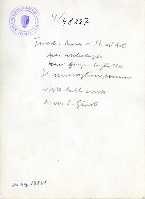 Trieste, Museo di Storia ed Arte : area archeologica, scavi giugno-luglio 1962, il muraglione romano visto dalla cinta di via San Giusto