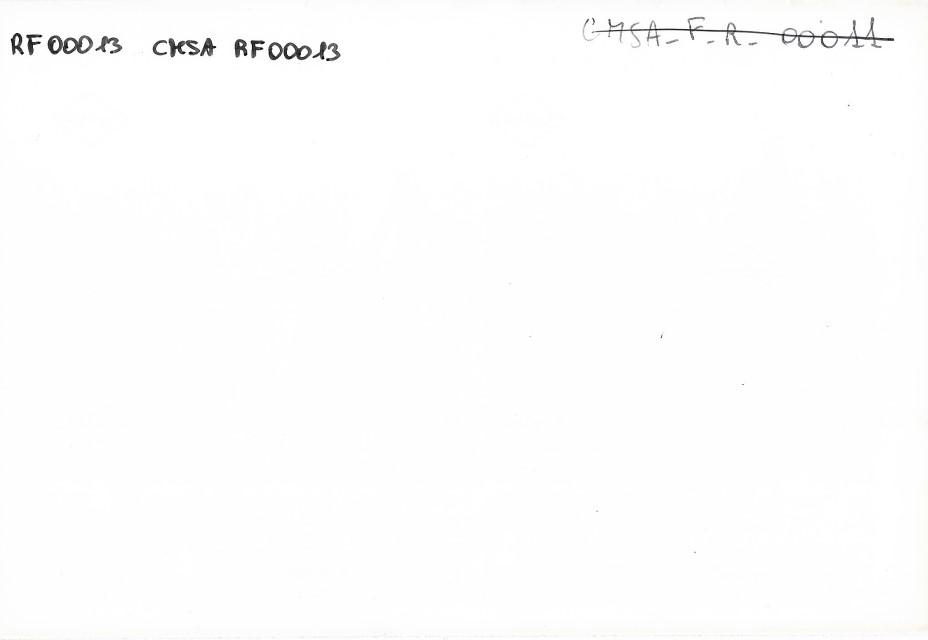 Riproduzione di una fotografia della facciata di un edificio all'interno della Risiera di San Sabba, sul recto il timbro della Polizia, probabile materiale del Gabinetto di Polizia Scientifica della Questura di Trieste