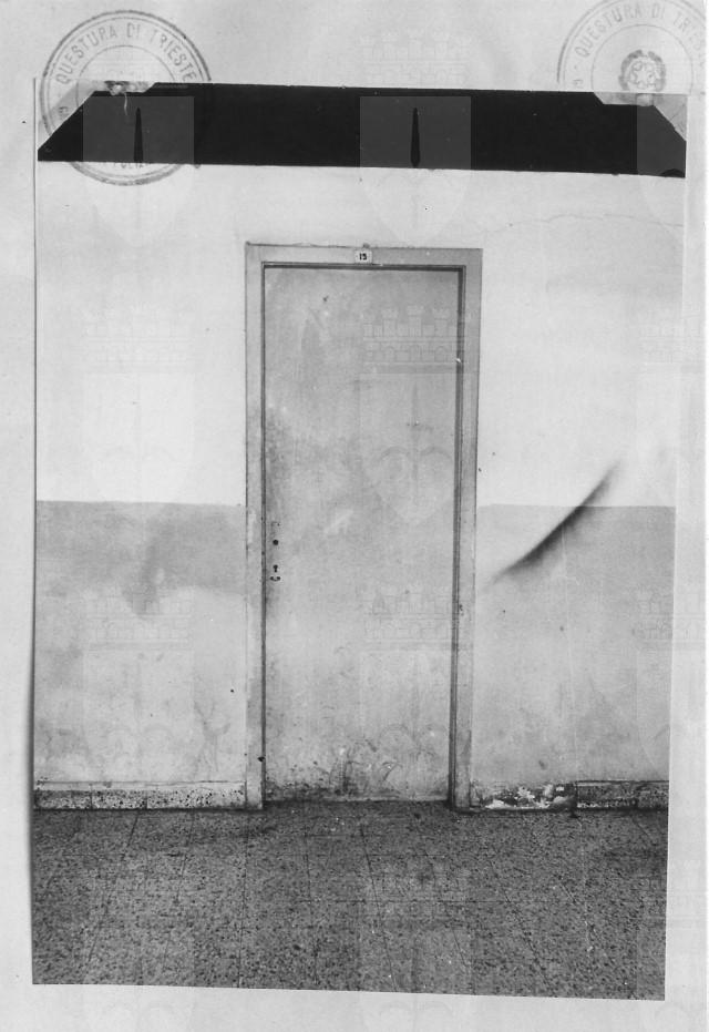 Riproduzione di una porta senza maniglia all'interno della Risiera di San Sabba