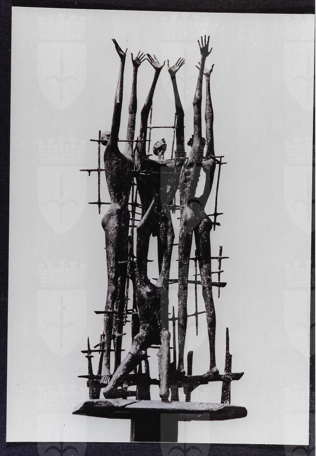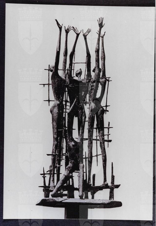 La scultura in bronzo (altezza 185 x 80 x 55 cm) con firma e monogramma dell'autore in basso a destra, è stata collocata il 22 giugno 1975 nella Sala delle Commemorazioni. L'ambiente, dopo essere stato un garage all'interno della Risiera di San Sabba, era stato risistemato a Cappella dall'architetto Romano Boico. Notizie tratte dalla scheda dell'opera del volume Le sfide della memoria. Alfonso Mottola fotografa, su commissione del Comune di Trieste, la realizzazione di alcune cartoline dedicate al monumento ideato da Romano Boico. Tratto dal catalogo L'archivio di Alfonso Mottola nella Fototeca dei Civici Musei di Storia ed Arte. Non solo fotografie