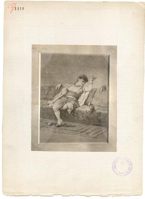L'acquerello donato al Municipio di Pirano ritrae una Donna in costume orientale che gioca con due scimmiette
