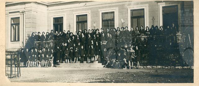 La villa venne costruita su progetto di Ruggero Berlam nel 1889. A commissionarla fu Giorgio Haggiconsta, un ricco possidente di origine greco-russa marito di Elena di Demetrio, proprietaria del fondo. Alla morte dei proprietari, l'edificio fu acquistato da un cittadino italiano che lo cedette al Comune di Trieste. A partire dal settembre 1924 fu sede dell'Istituto femminile di coltura e proponeva corsi liberi rivolti a un pubblico femminile di "lingua e letteratura italiana, francese, tedesca, inglese, storia della cultura e dell'arte, lavori femminili ed artistici, disegno, pittura, pittura, modellatura, incisione, corso pratico di batik, musica, ginnastica svedese ed armonico ritmica, danza classica". La foto ritrae, tra le altre, Fulvia, madre del donatore e la sorella Bruna Stoelker. Negli anni Trenta fu donata all'Opera Nazionale Balilla, affinché la destinasse a "Casa della Giovane Italiana" e, di conseguenza, vennero eseguiti dei lavori di adattamento, in particolare ai fabbricati di servizio. Tra il 1962 e il 1968 la villa venne utilizzata dall'Opera di assistenza ai profughi giuliani e dalmati, mentre nel 1972 la proprietà della struttura passò alla Regione che, dopo i restauri seguiti dall'ingegner Pietro Cvitanich, la destinò ad accogliere un centro di educazione motoria. Il complesso della villa comprendeva in origine, oltre all'edificio padronale, la scuderia, una rimessa, la lavanderia, le serre e un giardino all'inglese, il tutto progettato da Berlam. L'edificio principale, in stile eclettico con rimandi all'architettura italiana del Cinquecento, presenta una pianta ed una composizione dei volumi mosse ed asimmetriche ma equilibrate nell'insieme. Sul lato principale si distinguono tre corpi in altezza decrescente con una torretta che domina il complesso.