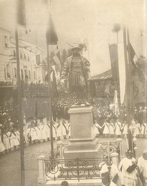 Cormons, riproduzione da fotografia dello scoprimento del monumento di Massimiliano 1. d'Asburgo il 14.06.1902