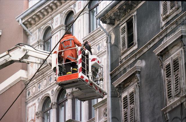 Cimitero di Barcola. Caduta cornicioni in corso Italia, vigili del fuoco. Traffico in corso Italia. Rinaldi, Raffaella Santilli giornalista. Illy, Hotel Savoia conferenza. Saggio danza.