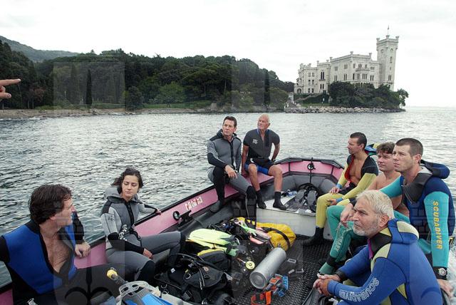 Provincia di Trieste, presidente Scoccimarro, Drabeni, Menia, convegno sulle profondità del mare, immersioni parco marino di Miramare con Enzo Maiorca e sua figlia, Francesca Vivarelli, fidanzata del presidente Scoccimarro.