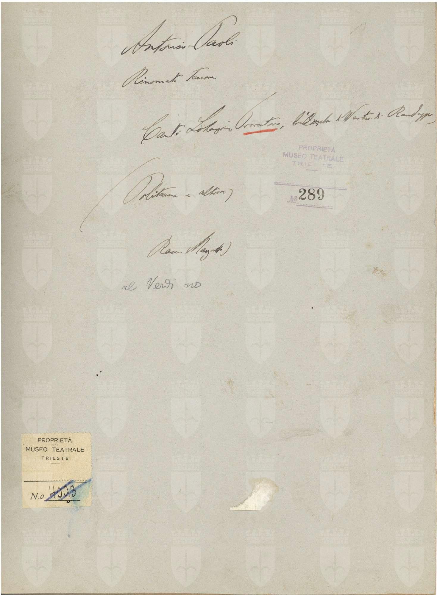 Proprietà Ente pubblico territoriale; Civico museo teatrale C. Schmidl
