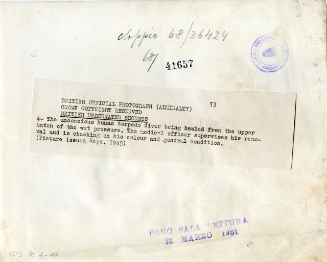 La "torpedine umana" viene estratta inconscia dell'apparecchio a pressione liquida mentre l'ufficiale medico studia le condizioni generali del soggetto