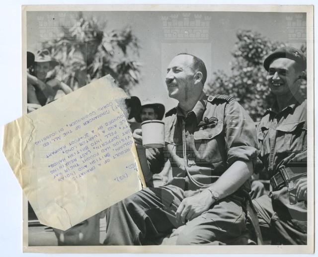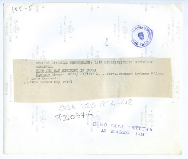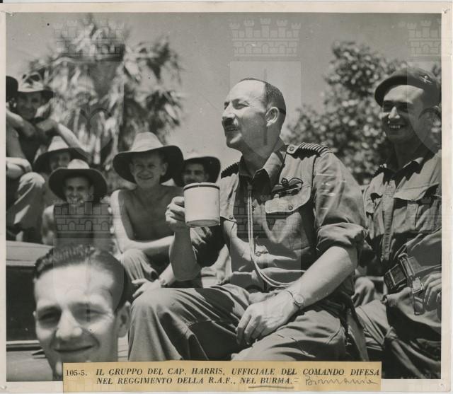 Il comandante J.H. Harris, in un momento di pausa, assieme ai soldati di un reggimento della RAF (Royal Air Force) in Birmania
