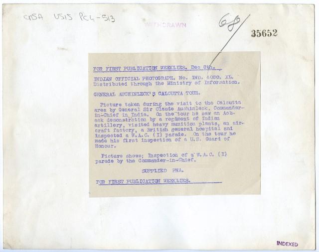 Visita del Generale Claude Auchinleck, comandante in capo in India. La foto rappresenta una parata del W.A.C.