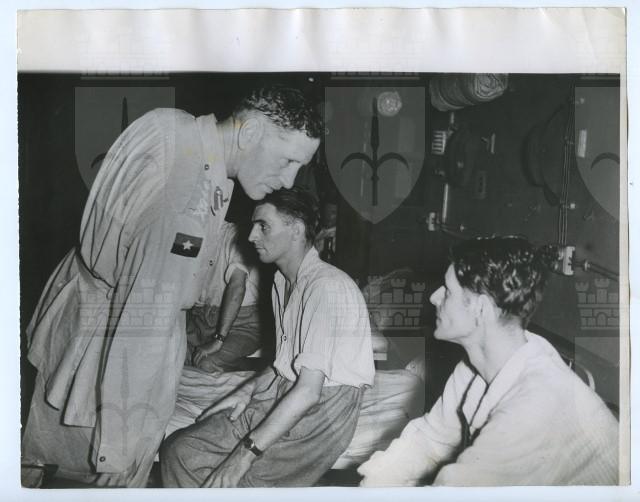 Visita del Generale Claude Auchinleck, comandante in capo in India. La foto rappresenta la visita all'ospedale da parte del generale ai pazienti.