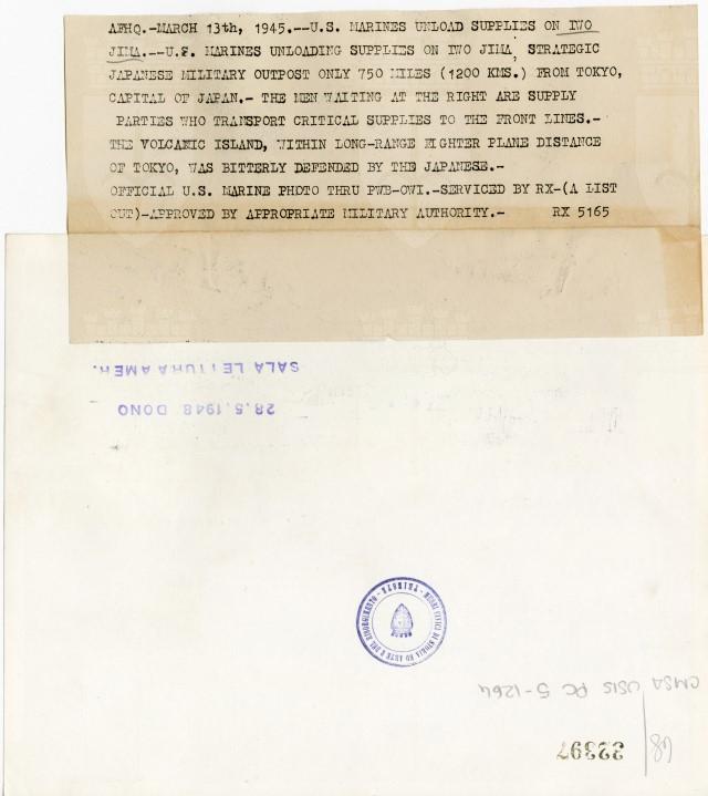 Marine Corps - fotografo principale ; Office of War Information. Psychological Warfare Branch - distributore