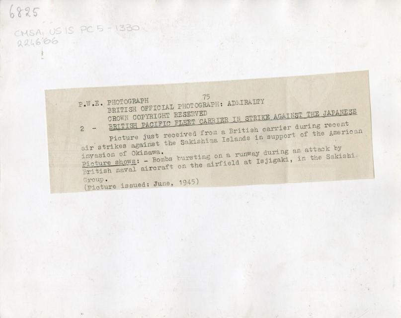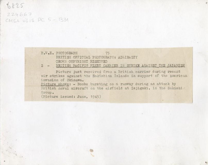 Veduta aerea di un attacco dell'Aviazione britannica sull'aeroporto di Isjigaki, isola del gruppo delle Sakishima, avvenuto nel giugno 1945.