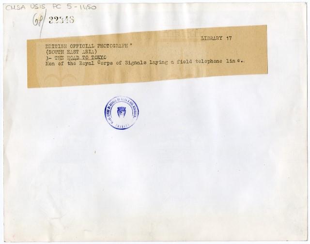 Due soldati del Royal Corps of Signal costruisono le reti telefoniche nella zona di Tokyo.