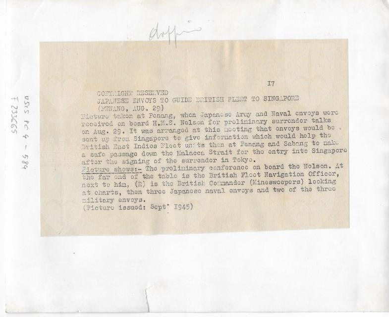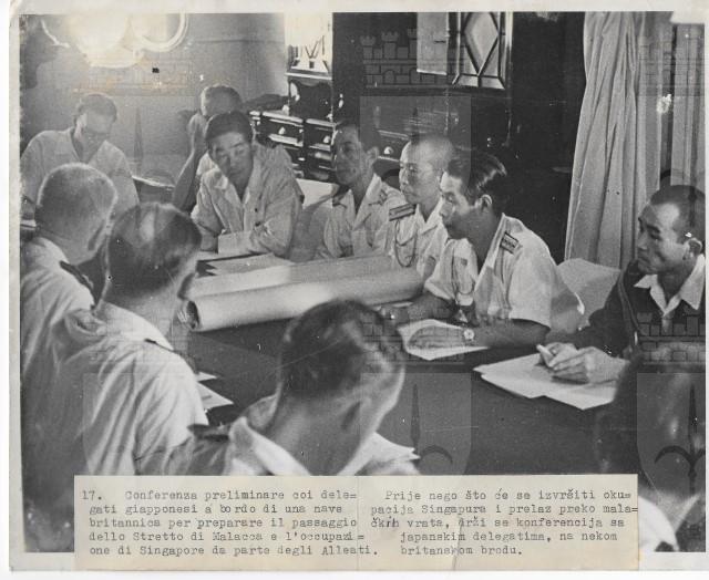 Conferenza preliminare con i delegati giapponesi per il passaggio di Malacca e Singapore agli alleati