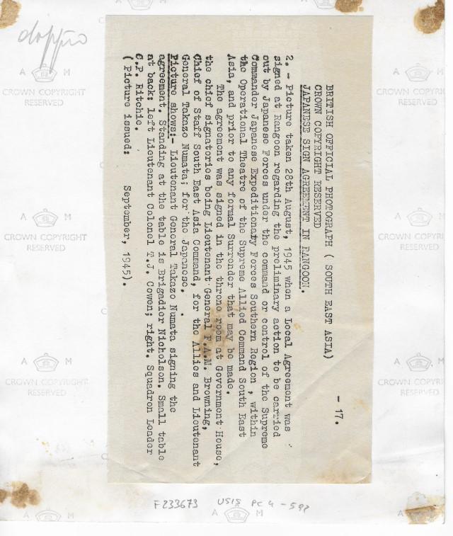 1945/08/28; Yangon; Birmania