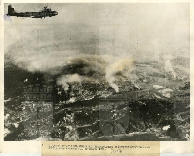 Bombardamento aereo dell'acciaieria giapponese di Yawata del 20 agosto 1944, da parte delle Superfortezze B-29, una delle quali appare nel lato superiore sinistro della fotografia.