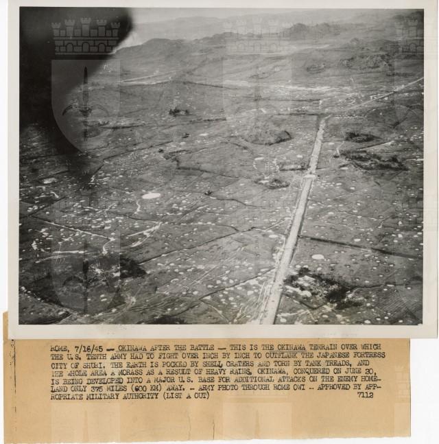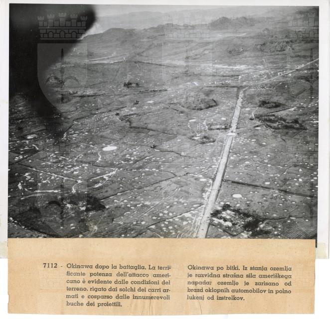 Veduta aerea di Okinawa dopo i bombardamenti aerei americani.