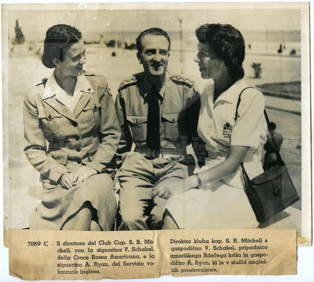 HomeIl direttore del Club Cap. S. R. Mit-chell, con la signorina V. Schakel. della Croce Rossa Americana, e la signorina A. Ryan, del Servizio volontario Inglese.