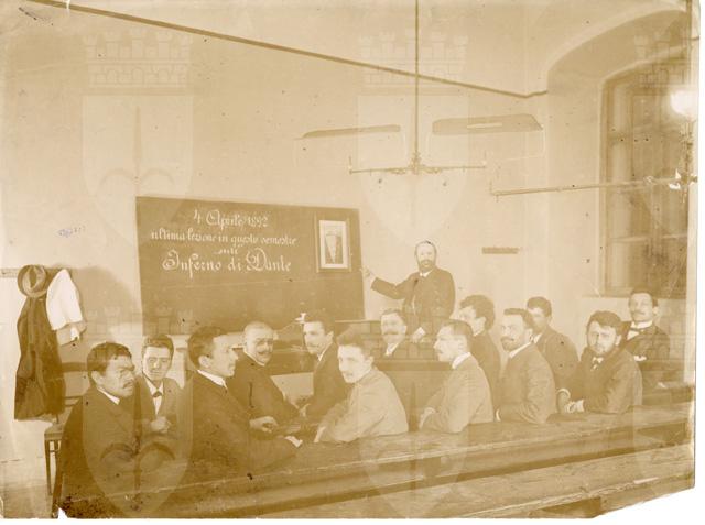Gruppo di allievi con Filippo Zamboni: ultima lezione in questo semestre sull'Inferno di Dante: Vienna 4 aprile 1892
