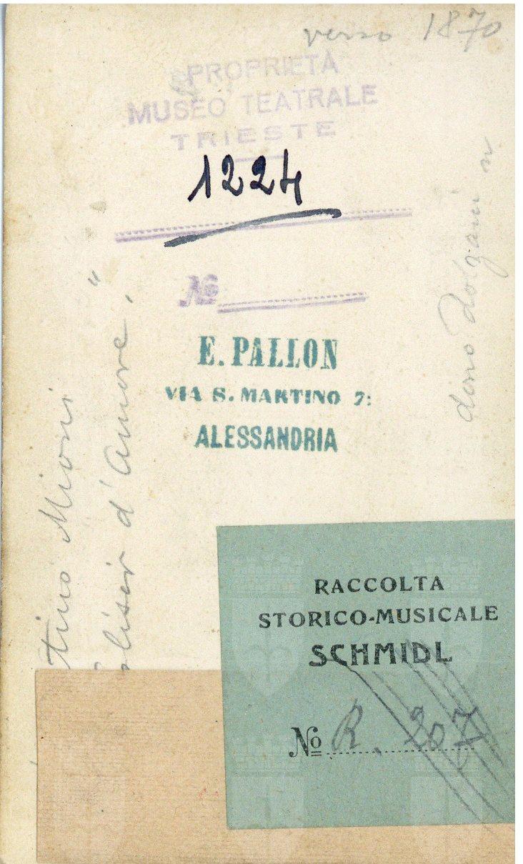 In costume con [?] nell'Elisir d'amore. Allievo del m.° G. A. Scaramelli. Una locandina del Teatro Galimbeni di Vigevano riporta una serata a beneficio del basso comico assoluto Valentino Mioni il giovedì 10 febbraio 1870 ( in rassegna stampa triestini)