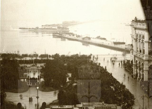 La fotografia, montata su cartoncino sagomato, ha la firma manoscritta dall'autore ed e' la prima di una serie di 4, che illustrano l'arrivo delle navi italiane a Trieste il 3 novembre 1918./pDomenica 3 novembre 1918. Sbarcano gli italiani./pDopo una giornata di attesa, resa ancora piu' intensa e piovosa da una nebbia maligna, alle 16 si profilano le sagome delle prime torpediniere italiane, precedute dall'evoluzione di quattro velivoli sopra le Rive. Gli scafi sono accolti dalle urla di gioia della folla, assiepata in piazza Grande [piazza Unita'] e lungo la marina. Due torpediniere approdano sui due lati del molo San Carlo [molo Audace] mentre le bande cittadine suonano l'inno di Garibaldi e quello a Mameli (da: Trieste 1900-1999. Cent'anni di storia, Trieste, Publisport, 1998, v. 2, pp. 116-117)