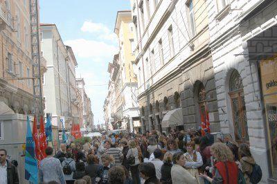 L'assessore Claudia D'Ambrosio con la stampa ed i manifestanti in strada